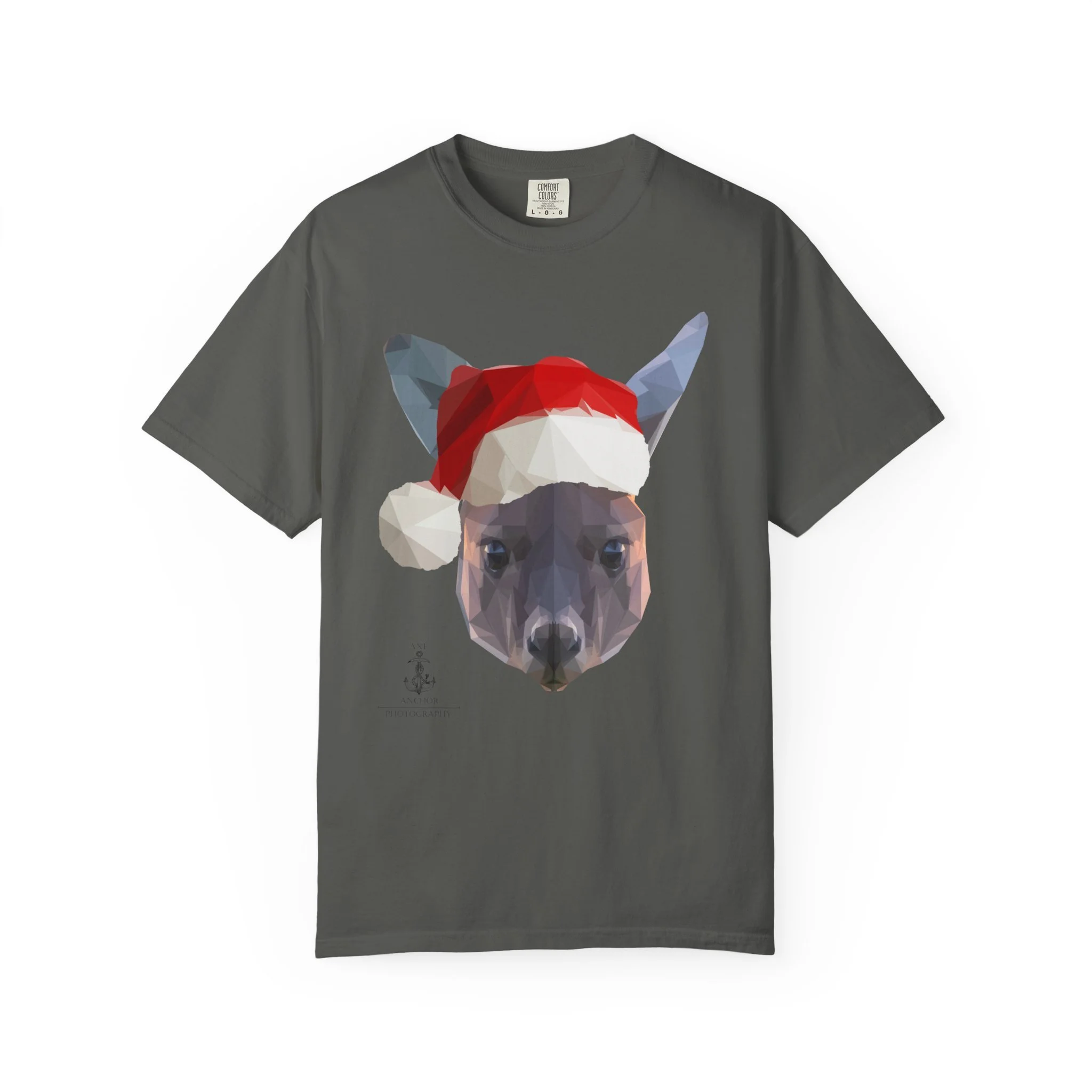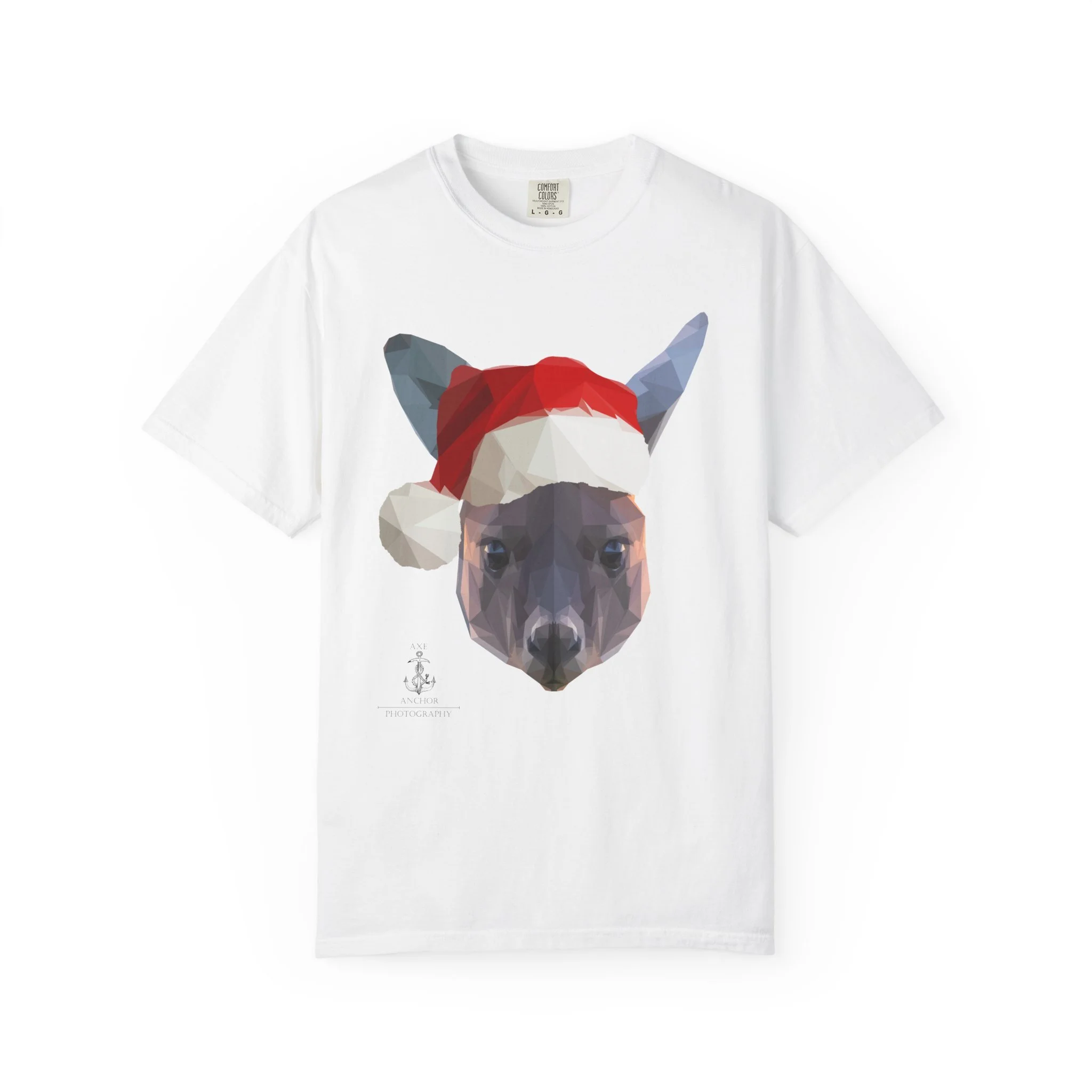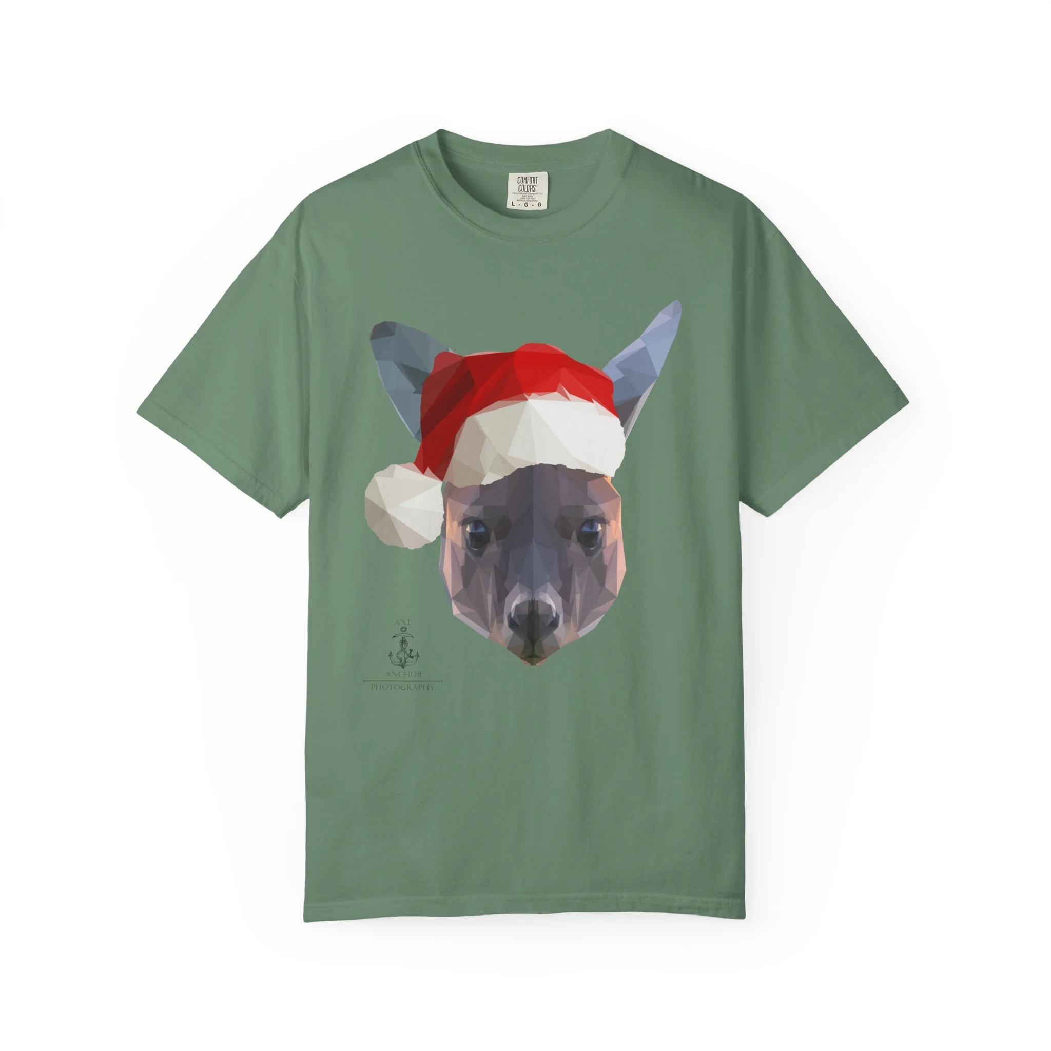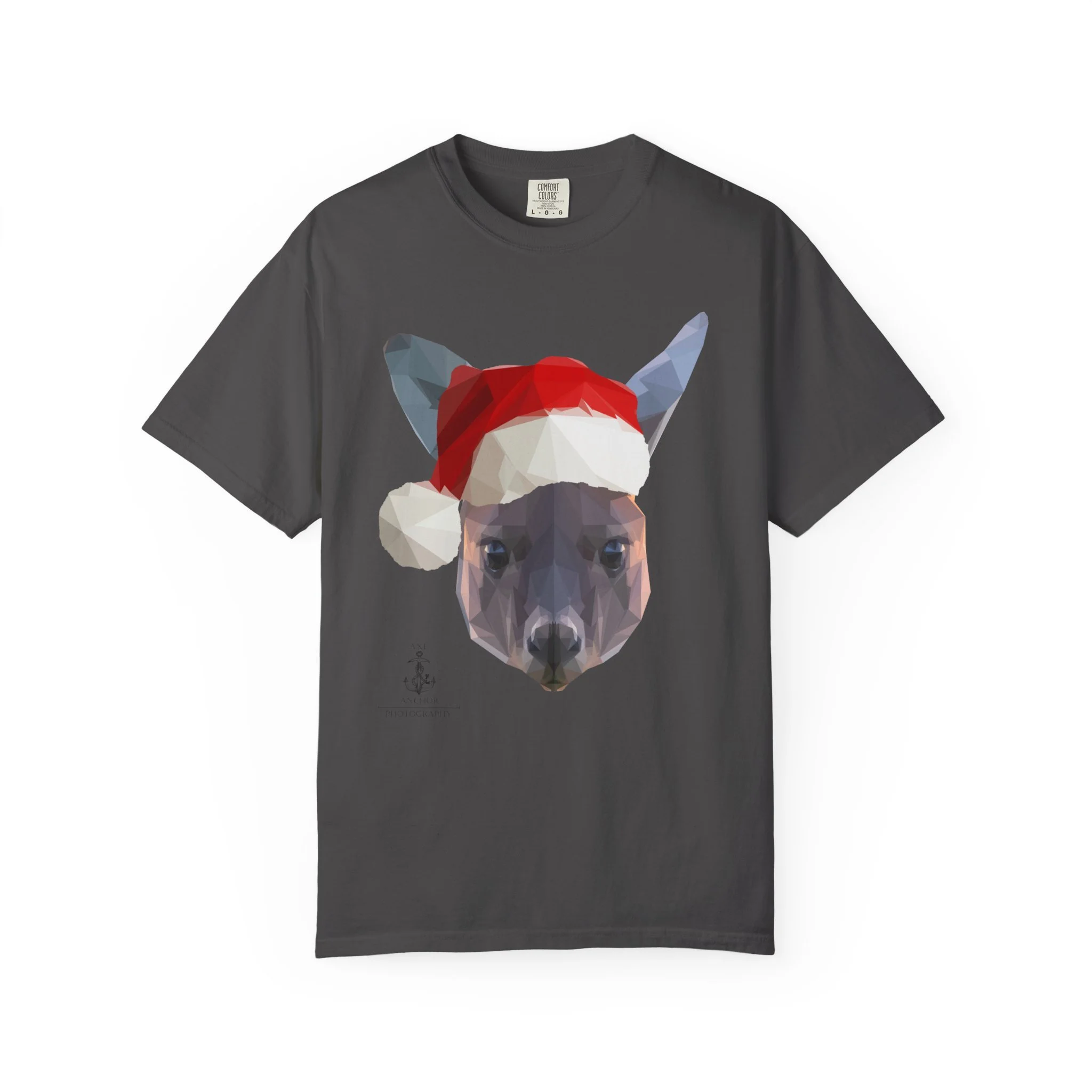 Soft, lived-in cotton with a playful, low-poly kangaroo wearing a cozy Santa hat—this relaxed tee brings quiet holiday charm to everyday wear.