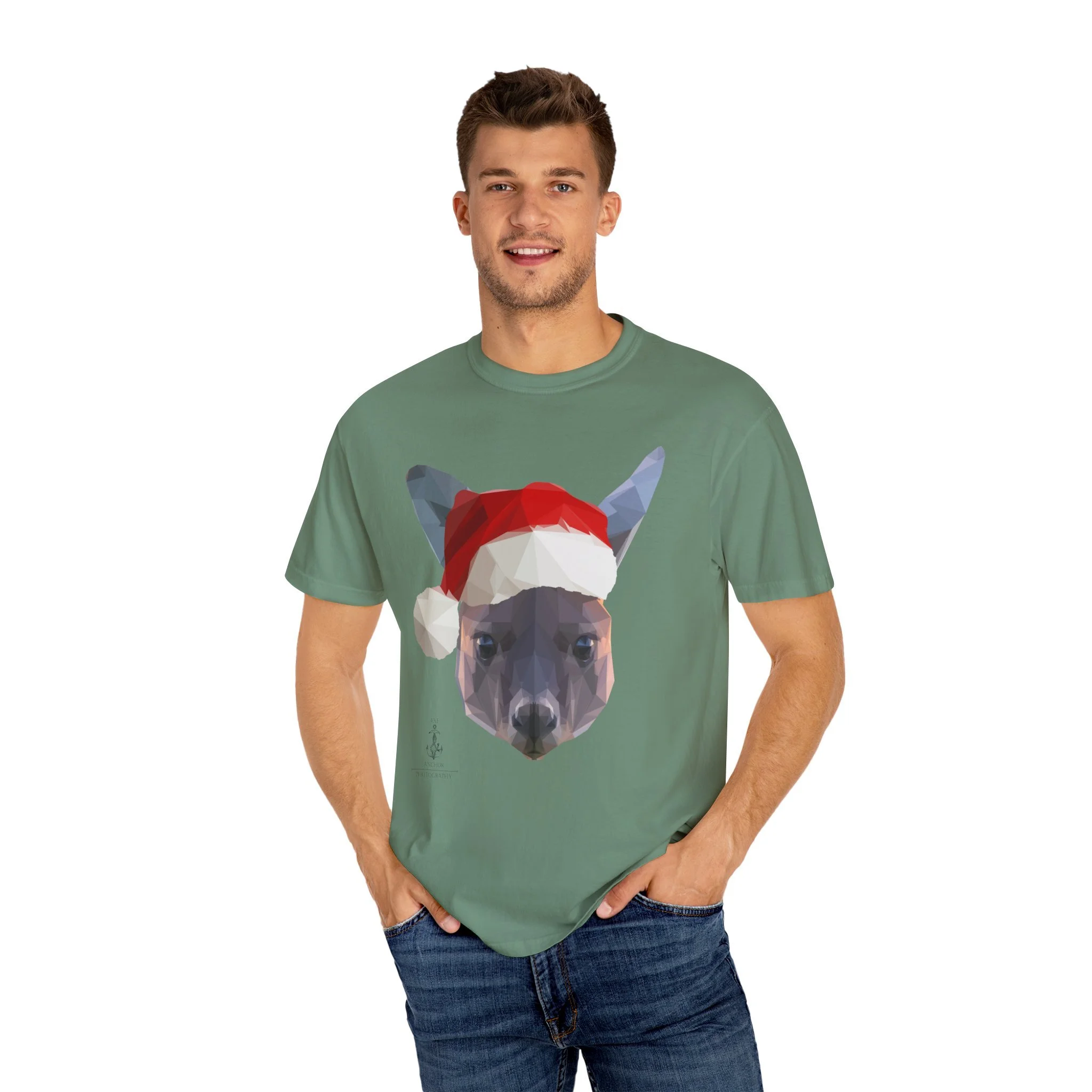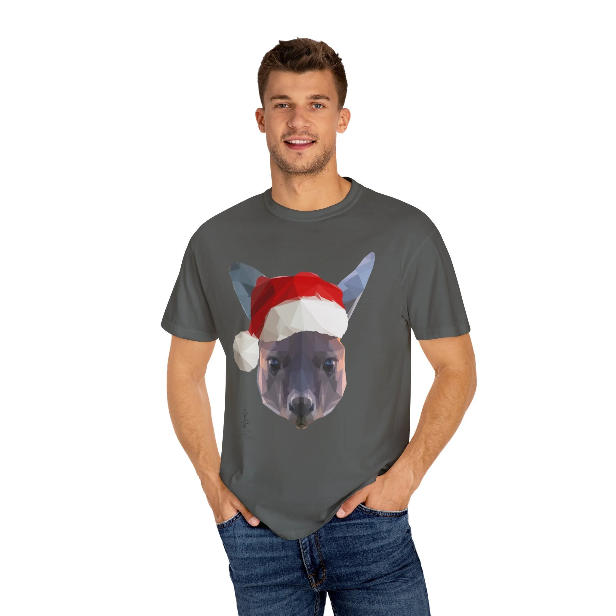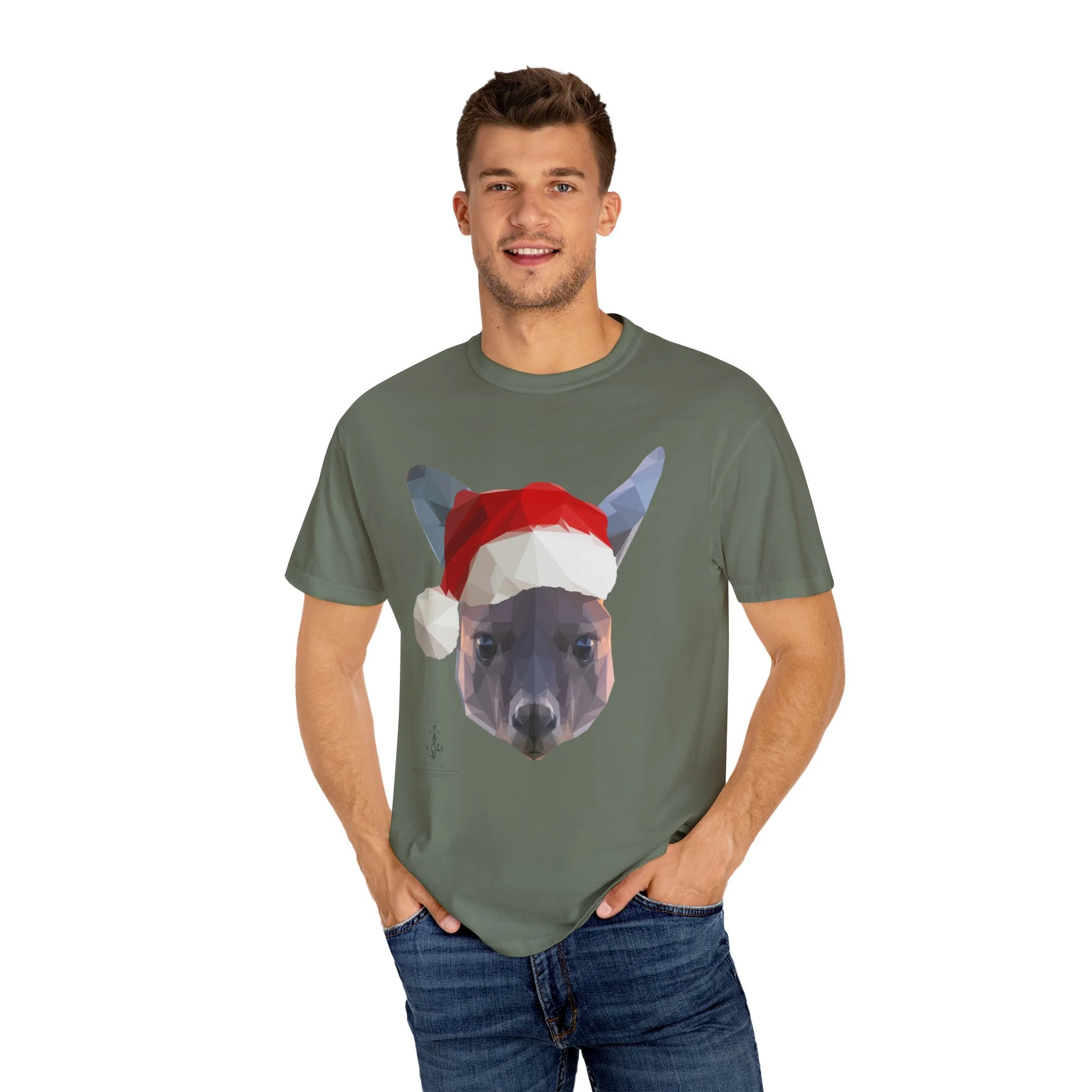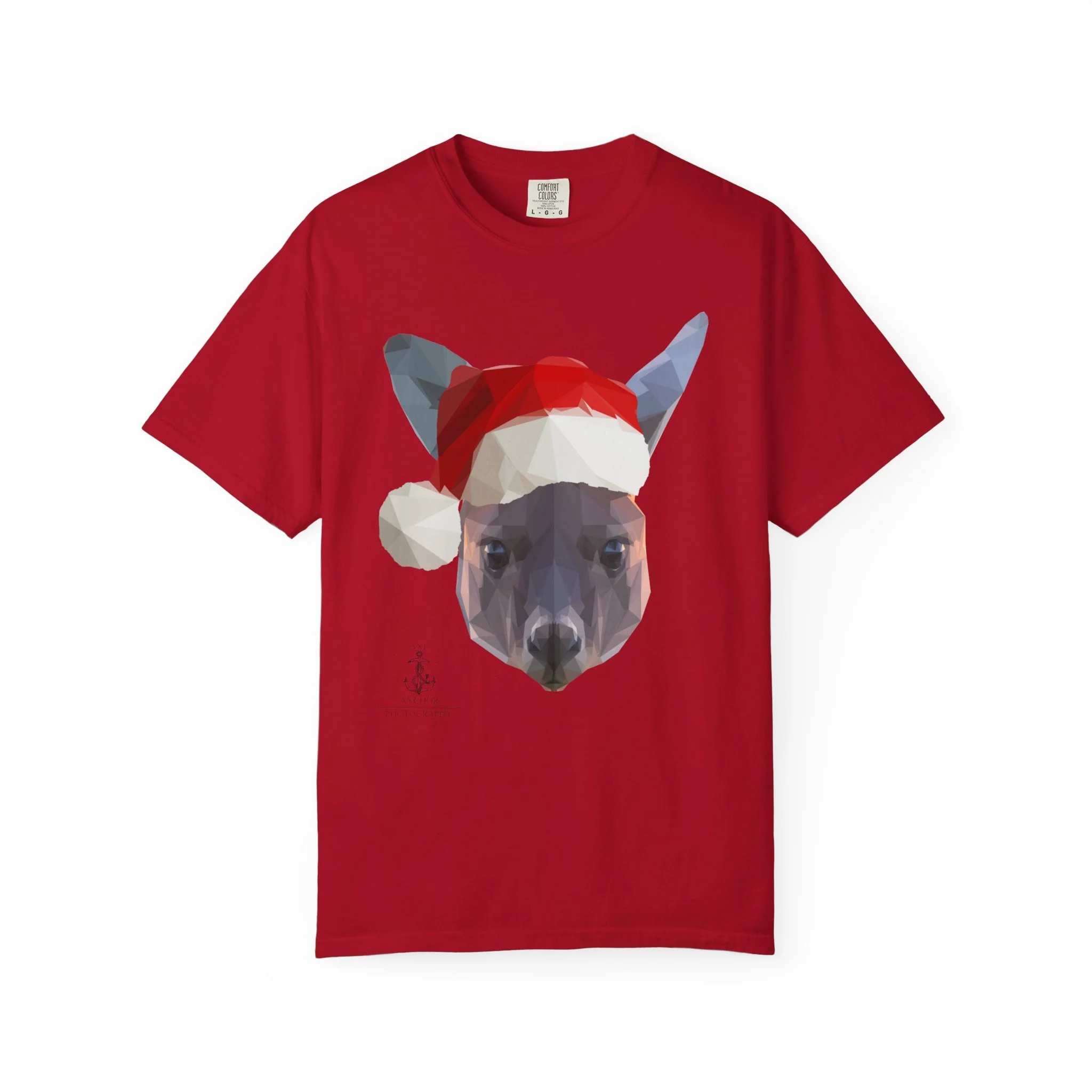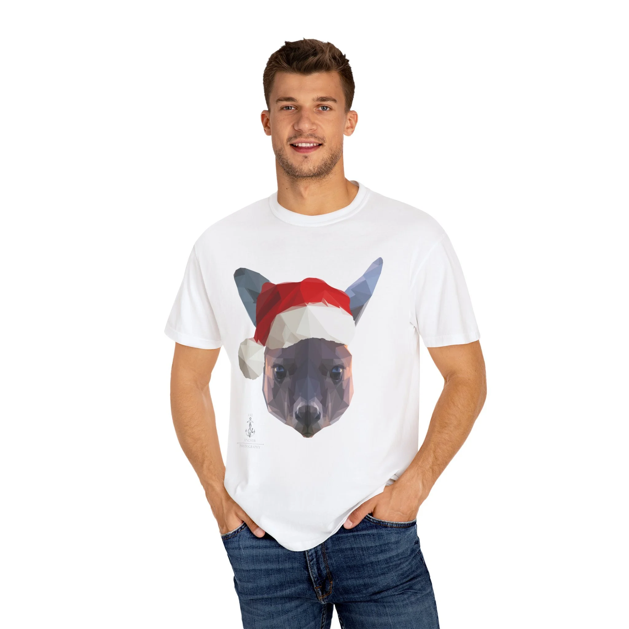Soft, lived-in cotton with a playful, low-poly kangaroo wearing a cozy Santa hat—this relaxed tee brings quiet holiday charm to everyday wear.