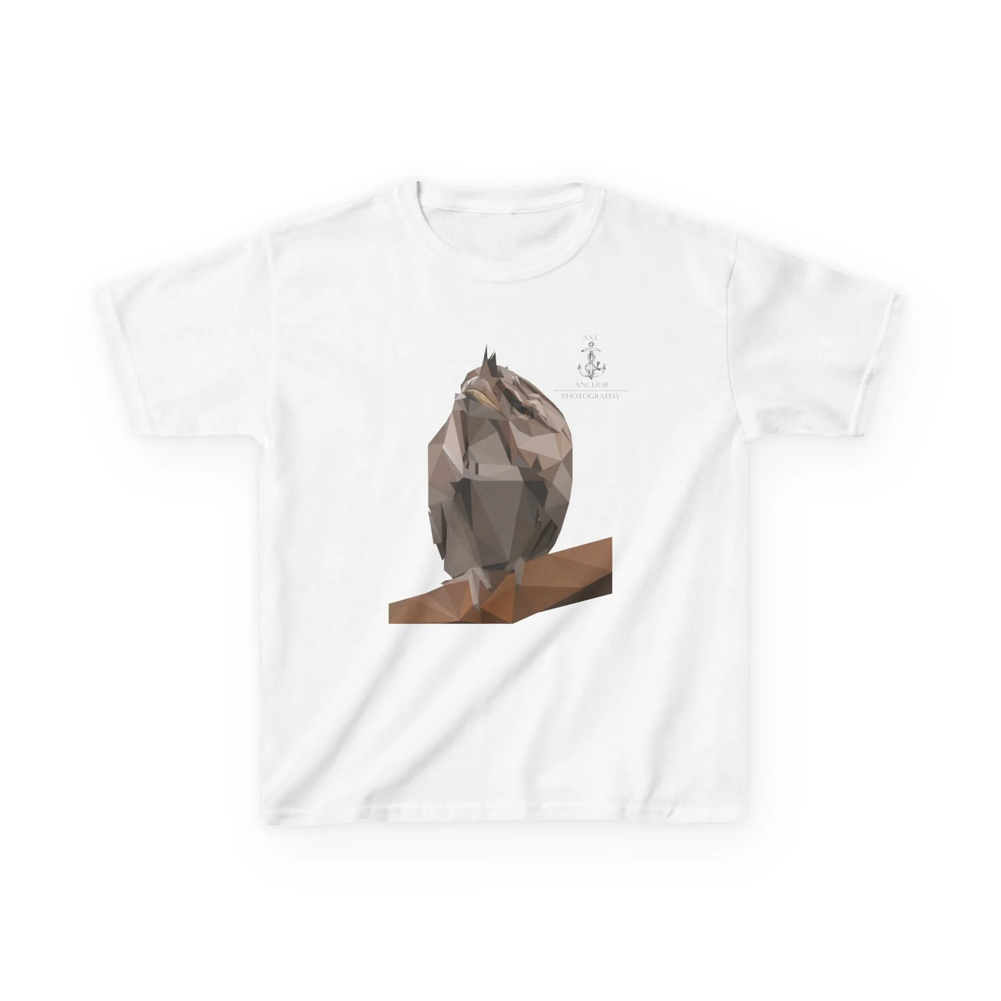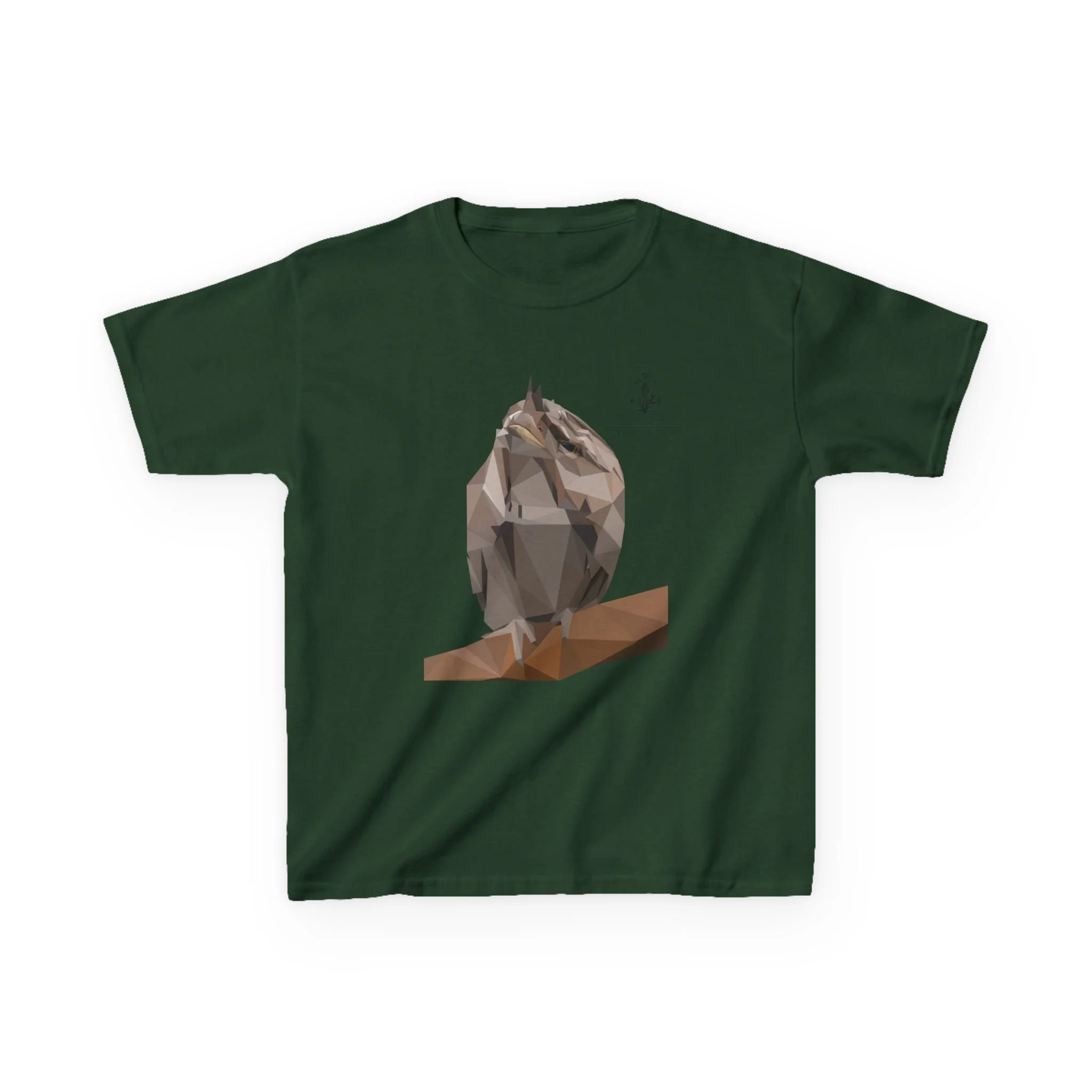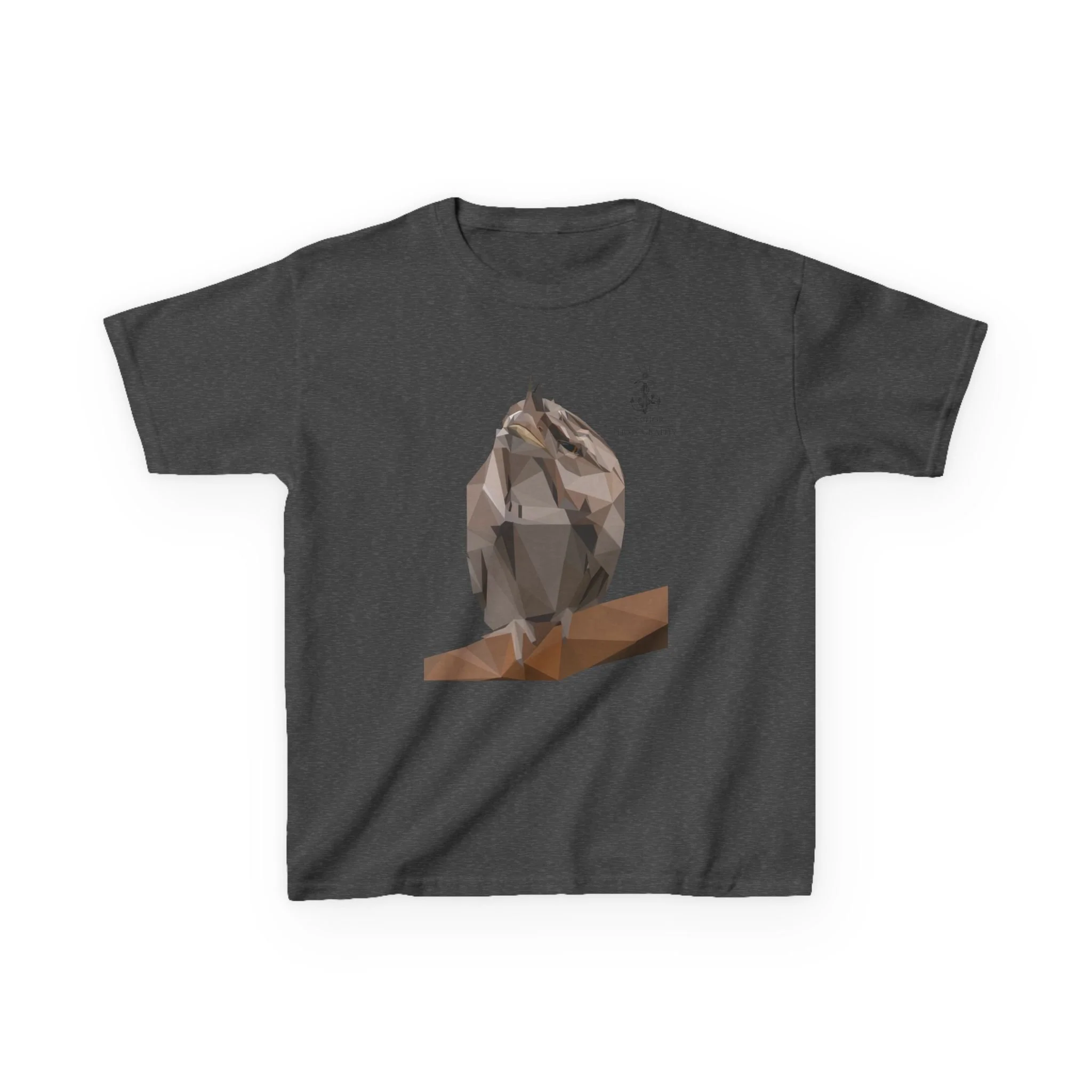 Let your child step into the magical world of Australian wildlife with this striking low-poly Tawny Frogmouth graphic tee!